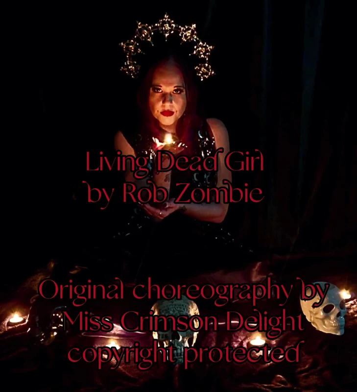 We are going dark for this one, put on your undead vixen persona for the gritty and sensual Living dead girl by Rob Zombie. all you will need is a sturdy chair and a pair of gloves, there are 2 levels to this routine so please follow the advisories carefully. Original choreography by Miss Crimson Delight, the routine is copyright protected and must be adhered to. Track credits; written and produced by Rob Zombie, Scott Humphrey. released by Geffen.